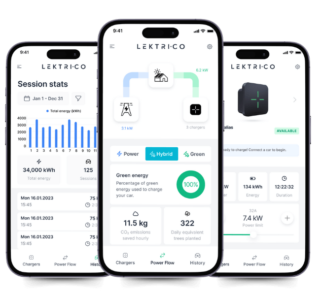 Grâce à un compteur intelligent et à une petite pince ampèremétrique, le logiciel Lektri.co surveille automatiquement la puissance utilisée par l’appareil et ajuste le courant de recharge